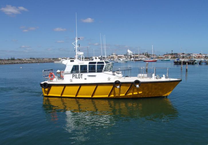 The new $1.3m Pilot Boat - TUART arrived by road from her Brisbane builder, Norman Wright and Sons' premises on Thursday 4th May. The first Pilotage transfer was the departing 'MV IGUANA' on 5th May. She was accepted by BPA from the builders for operational duties on 8th May.