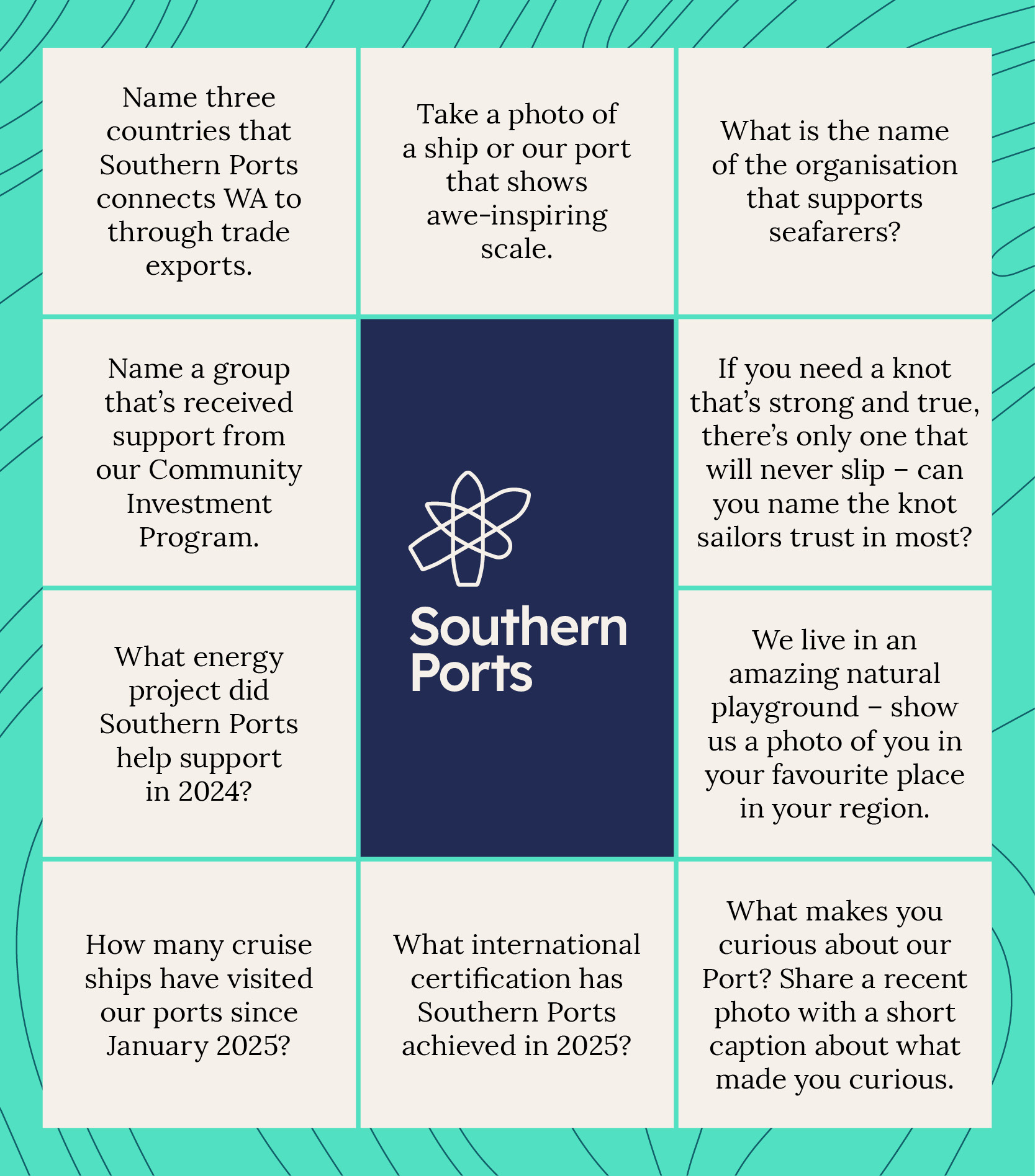 Whether you’re a maritime enthusiast or someone who enjoys a good challenge, the Curiosity Quest offers a fun way to learn more about Southern Ports and the role it plays in creating stronger regions.
