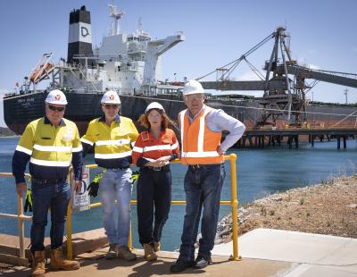 Minister for Ports Stephen Dawson MLC announced that 176,000 tonnes of iron ore had been successfully loaded onto the MV Densa Shark during a five-day operation before it departed for China on Saturday.